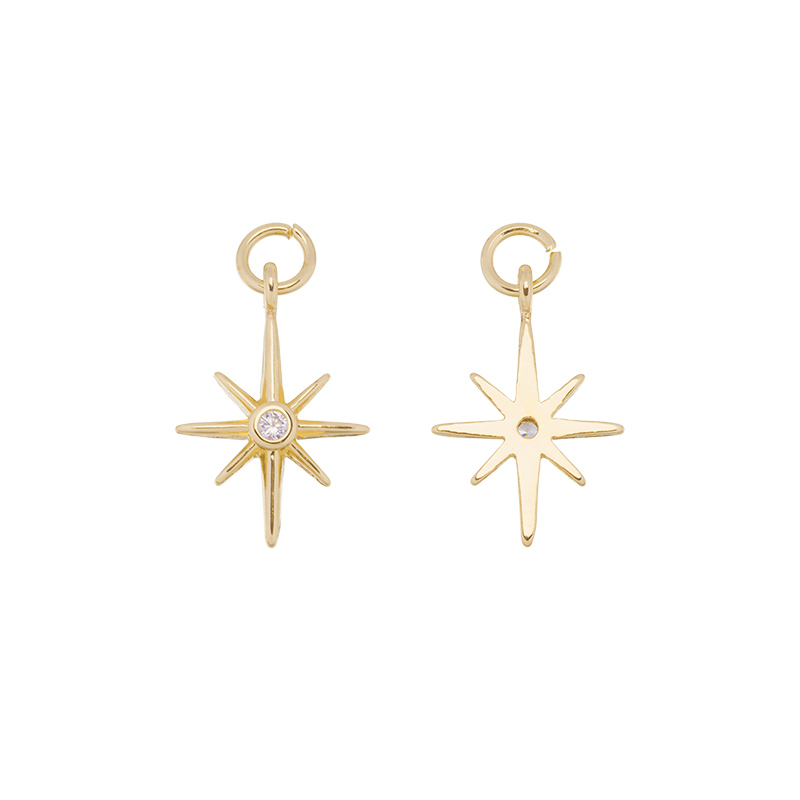Фурнитура для бижутерии - подвеска в форме звездочки, украшенной фианитом. Материал: латунь, покрытие: золото. Размер с колечком: 18 x 12, мм, внутренний диаметр колечка: 1 мм, диаметр соединительного кольца: 5 мм. Производство: Китай. Цена указана за 1 шт.