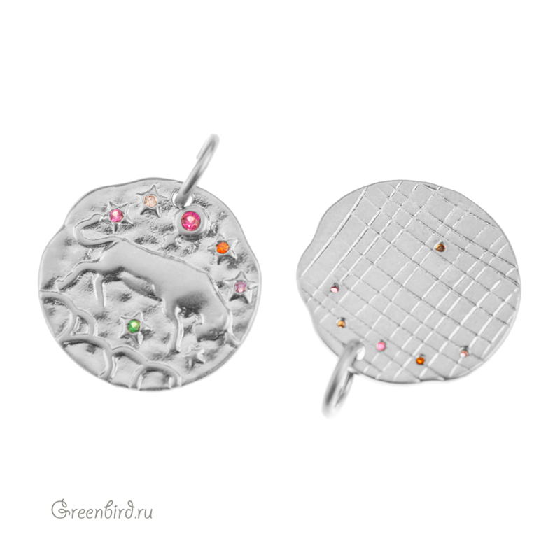 Фурнитура для бижутерии - подвеска односторонняя с зодиакальным символом, украшенная фианитами, с разъемным кольцом. Материал: латунь, покрытие: родий. Цвета фианитов: сиреневый, розовый, оранжевый, зеленый. Размер: 15 х 14,8 мм, толщина: 1,7 мм, кольцо: 5,8 мм, толщина проволоки: 0,9 мм, общая высота: 18,6 мм. Обратите внимание: в зависимости от партии покрытие может быть глянцевым или более матовым. Возможны наплывы покрытия на фианиты. Производство: Китай. Цена указана за 1 шт.