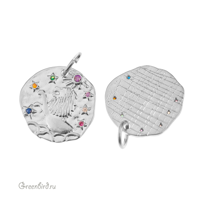 Фурнитура для бижутерии - подвеска односторонняя с зодиакальным символом, украшенная фианитами, с разъемным кольцом. Материал: латунь, покрытие: родий. Цвета фианитов: сиреневый, синий, оранжевый, красный, зеленый, хрусталь. Размер: 15,4 х 15,1 мм, толщина: 1,6 мм, кольцо: 5,6 мм, толщина проволоки: 0,9 мм, общая высота: 19 мм. Обратите внимание: в зависимости от партии покрытие может быть глянцевым или более матовым. Возможны наплывы покрытия на фианиты. Производство: Китай. Цена указана за 1 шт.