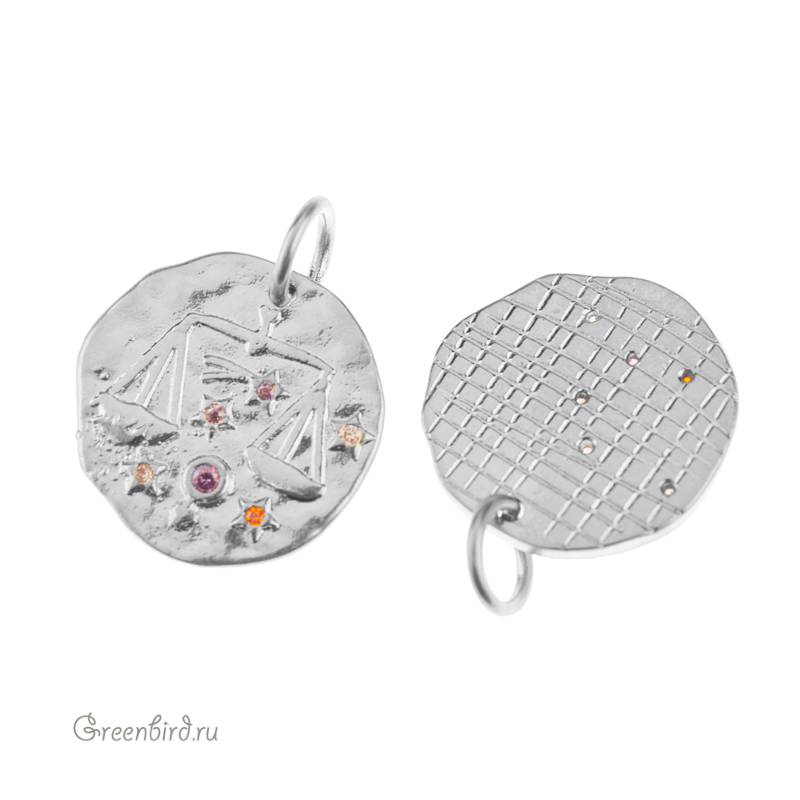 Фурнитура для бижутерии - подвеска односторонняя с зодиакальным символом, украшенная фианитами, с разъемным кольцом. Материал: латунь, покрытие: родий. Цвета фианитов: сиреневый, оранжевый, хрусталь. Размер: 14,8 х 14,8 мм, толщина: 2 мм, кольцо: 5,7 мм, толщина проволоки: 0,9 мм, общая высота: 18,6 мм. Обратите внимание: в зависимости от партии покрытие может быть глянцевым или более матовым. Возможны наплывы покрытия на фианиты. Производство: Китай. Цена указана за 1 шт.
