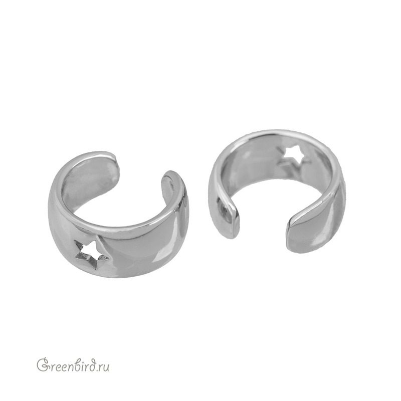 Фурнитура для бижутерии - кафф-кольцо плоский гладкий без колечек и креплений, со сквозным отверстием в форме звезды. Материал: латунь, покрытие: родий. Размер: 5,9 х 12,4 мм, толщина: от 1,1 до 1,4 мм, расстояние между концами: 3,5 мм, внутренний диаметр примерно 9,6 мм. В зависимости от партии размеры могут незначительно отличаться. Производство: Китай. Цена указана за 1 штуку.