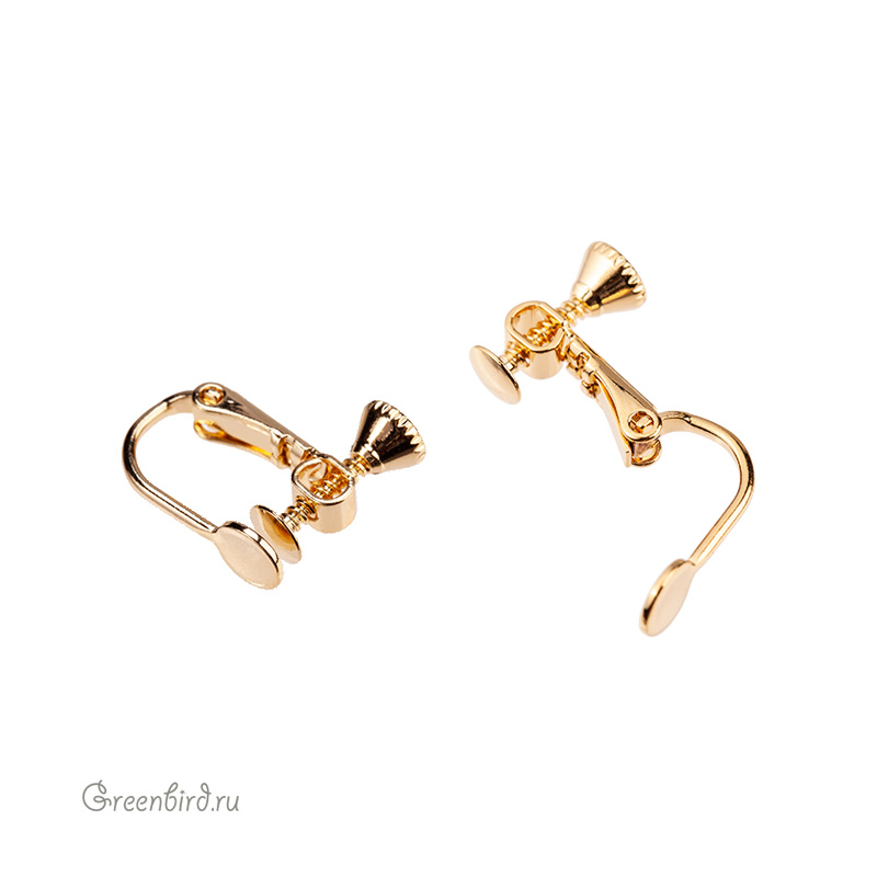 Металлические клипсы с винтиком и плоской платформой. Материал: латунь, покрытие: золото. Размер: 9,4 х 14,9 мм, платформа: 5,1 мм. Производство: Корея. Цена указана за пару.