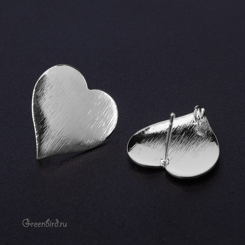 Фурнитура для бижутерии - пуссеты с текстурированным декоративным элементом и спрятанным на оборотной стороне колечком. Материал: латунь, покрытие: родий. Размер декоративного элемента: 19 х 19,6 мм, внутренний диаметр колечка: 2,1 мм, толщина штырька: 0,7 мм. Обратите внимание: пуссеты продаются без заглушек. Производство: Китай. Цена указана за пару.