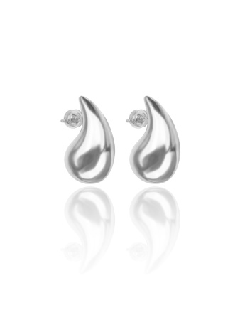 Серьги - пуссеты дутые капли, полые внутри, легкие. Материал: латунь, покрытие: родий. Размер декоративного элемента: 25 х 14 мм, толщина от 2 до 14 мм, толщина штырька: 1 мм. Обратите внимание: серьги продаются c заглушками. Производство: Китай. Цена указана за пару.