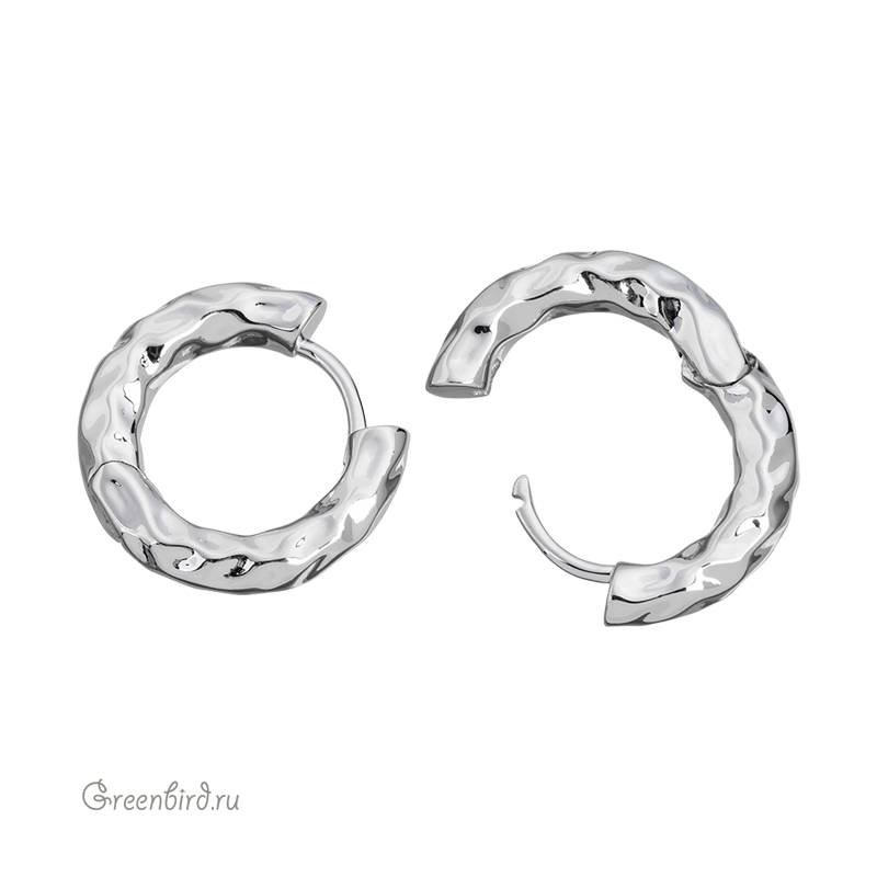 Фурнитура для бижутерии - объемные швензы-кольца без колечек и креплений (бублики, серьги-конго), текстурированные (эффект смятого материала). Материал: латунь, покрытие: родий. Размер: 4,3 х 20,4 мм, толщина дужки: 1,1 х 1,2 мм, внутренний диаметр: 13,6 мм. Производство: Китай. Цена указана за пару.