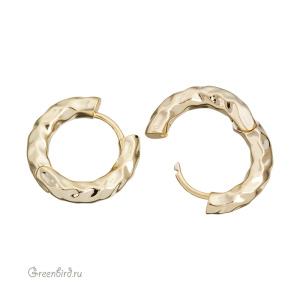 Фурнитура для бижутерии - объемные швензы-кольца без колечек и креплений (бублики, серьги-конго), текстурированные (эффект смятого материала). Материал: латунь, покрытие: светлое золото. Размер: 4,3 х 20,4 мм, толщина дужки: 1,1 х 1,2 мм, внутренний диаметр: 13,6 мм. Производство: Китай. Цена указана за пару.