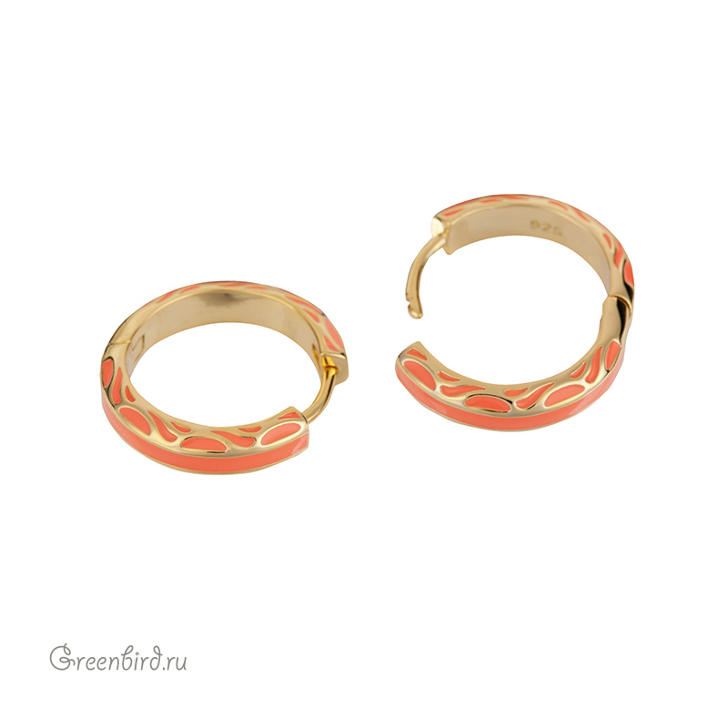 Фурнитура для бижутерии - швензы-кольца без колечек и креплений (серьги-конго), с эмалью. Материал: латунь, покрытие: золото. Цвет эмали: оранжевый. Размер: 4,6 х 20 мм, толщина дужки: 1,1 х 1,2 мм, внутренний диаметр: 15,6 мм. Производство: Китай. Цена указана за пару.