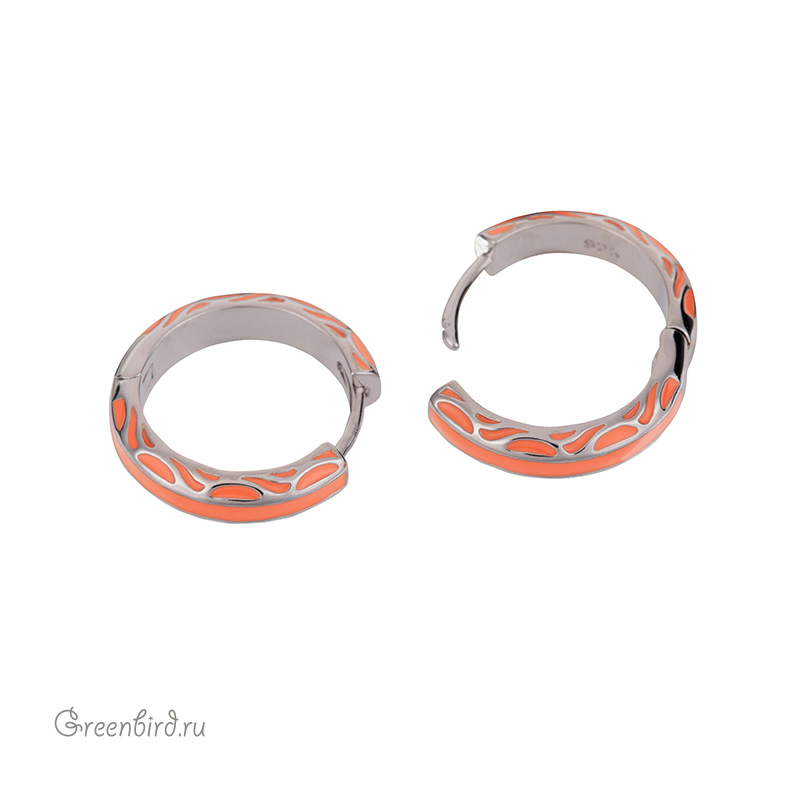 Фурнитура для бижутерии - швензы-кольца без колечек и креплений (серьги-конго), с эмалью. Материал: латунь, покрытие: родий. Цвет эмали: оранжевый. Размер: 4,6 х 20 мм, толщина дужки: 1,1 х 1,2 мм, внутренний диаметр: 15,6 мм. Производство: Китай. Цена указана за пару.