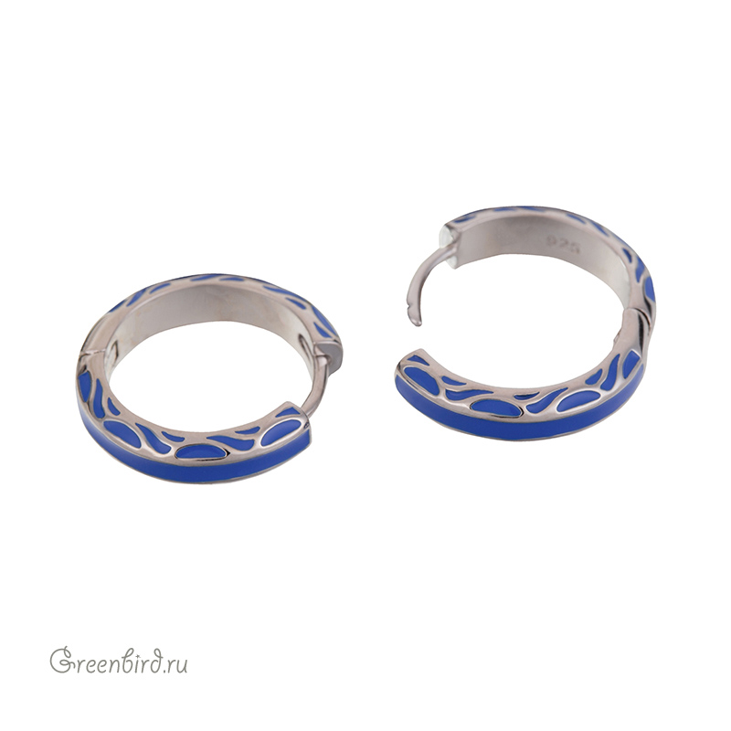 Фурнитура для бижутерии - швензы-кольца без колечек и креплений (серьги-конго), с эмалью. Материал: латунь, покрытие: родий. Цвет эмали: синий. Размер: 4,6 х 20 мм, толщина дужки: 1,1 х 1,2 мм, внутренний диаметр: 15,6 мм. Производство: Китай. Цена указана за пару.