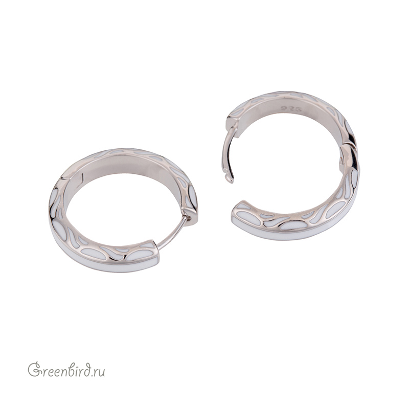 Фурнитура для бижутерии - швензы-кольца без колечек и креплений (серьги-конго), с эмалью. Материал: латунь, покрытие: родий. Цвет эмали: белый. Размер: 4,6 х 20 мм, толщина дужки: 1,1 х 1,2 мм, внутренний диаметр: 15,6 мм. Производство: Китай. Цена указана за пару.