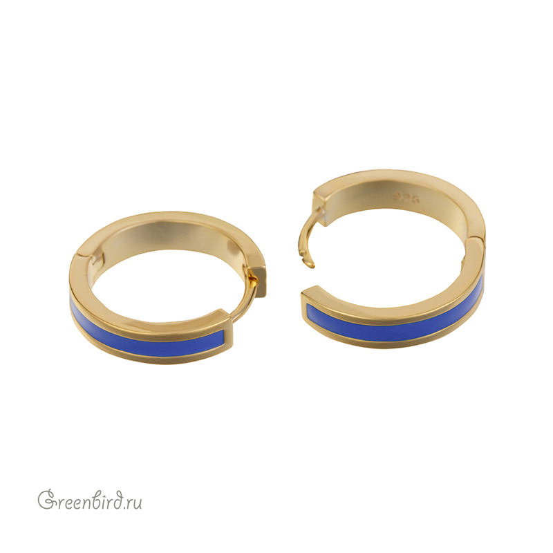 Фурнитура для бижутерии - плоские швензы-кольца без колечек и креплений (серьги-конго), гладкие с эмалью. Материал: латунь, покрытие: золото. Цвет эмали: синий. Размер: 4,3 х 20 мм, толщина дужки: 1,1 х 1,2 мм, внутренний диаметр: 16 мм. Производство: Китай. Цена указана за пару.