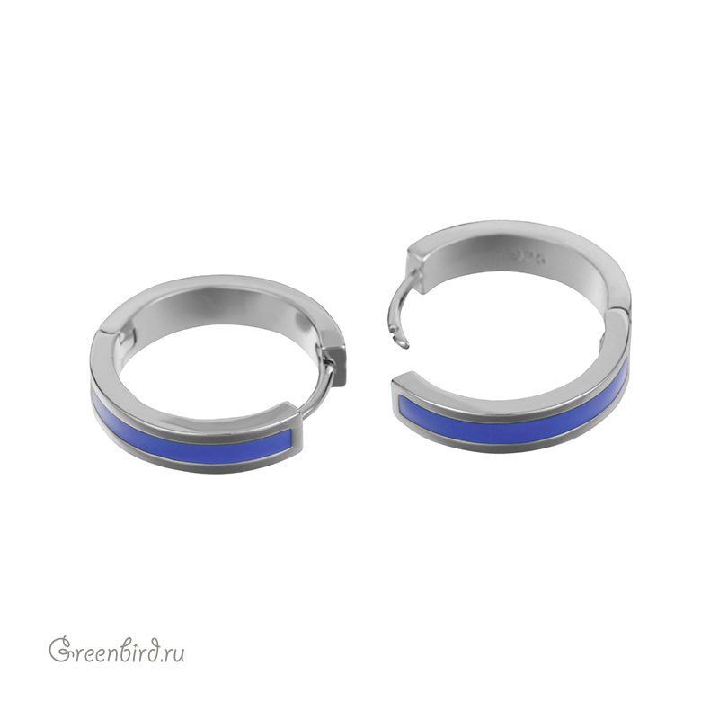 Фурнитура для бижутерии - плоские швензы-кольца без колечек и креплений (серьги-конго), гладкие с эмалью. Материал: латунь, покрытие: родий. Цвет эмали: синий. Размер: 4,3 х 20 мм, толщина дужки: 1,1 х 1,2 мм, внутренний диаметр: 16 мм. Производство: Китай. Цена указана за пару.