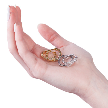 Фурнитура для бижутерии - объемные швензы-кольца без колечек и креплений (бублики, серьги-конго), инкрустация фианитами. Материал: латунь, покрытие: родий. Размер: 21 х 3.8 мм, длина дужки: 7 мм, толщина примерно 1,1 мм. Производство: Китай. Цена указана за пару.