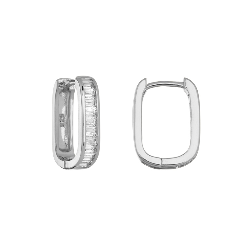 Серьги-кольца без колечек и креплений (бублики, серьги-конго), инкрустация фианитами. Материал: латунь, покрытие: родий. Высота: 16 мм, ширина: 12 мм, толщина: 3,8 мм, длина дужки: 7 мм, толщина примерно 1,1 мм. Производство: Китай. Цена указана за пару.