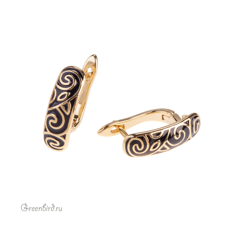 Фурнитура для бижутерии - швензы зеркальные с английским замком и эмалью. Материал: латунь, покрытие: золото. Цвет эмали: черный. Размер декоративного элемента: 5,8 х 17,5 мм, толщина дужки 1,2 мм, ширина дужки: 3 мм, толщина штырька: 0,9 х 1,1 мм. Производство: Китай. Цена указана за пару.