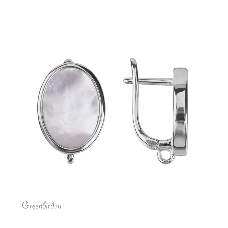 Фурнитура для бижутерии - швензы с английским замком, с перламутровой вставкой. Материал: латунь, покрытие: родий. Цвет: белый. Размер декоративного элемента: 16 х 12 мм, толщина дужки 1,2 мм, ширина дужки: 2,8 мм, толщина штырька: 1,1 х 1,3 мм. Производство: Китай. Цена указана за пару.