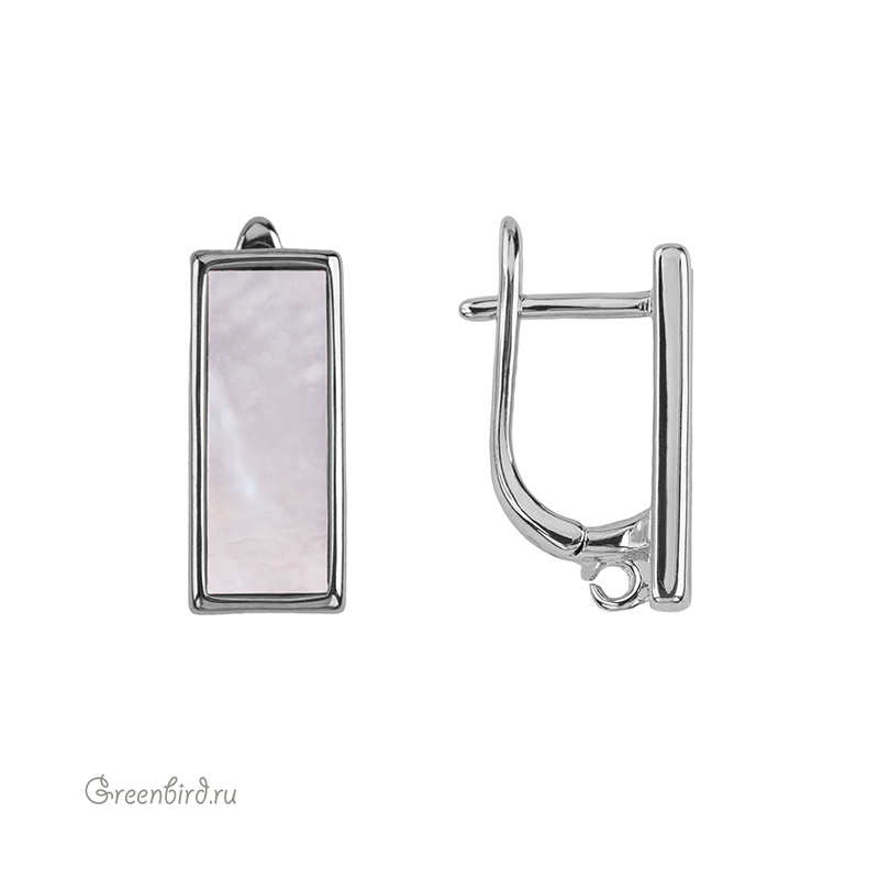 Фурнитура для бижутерии - швензы с английским замком в форме прямоугольников, с перламутровой вставкой и незапаянным колечком для подвески. Материал: латунь, покрытие: родий. Цвет: белый. Размер декоративного элемента: примерно 18 х 8 мм, толщина дужки 1,2 мм, ширина дужки: 3 мм, толщина штырька: 1,1 х 1,2 мм, внутренний диаметр колечка: 2 мм. Производство: Китай. Цена указана за пару.