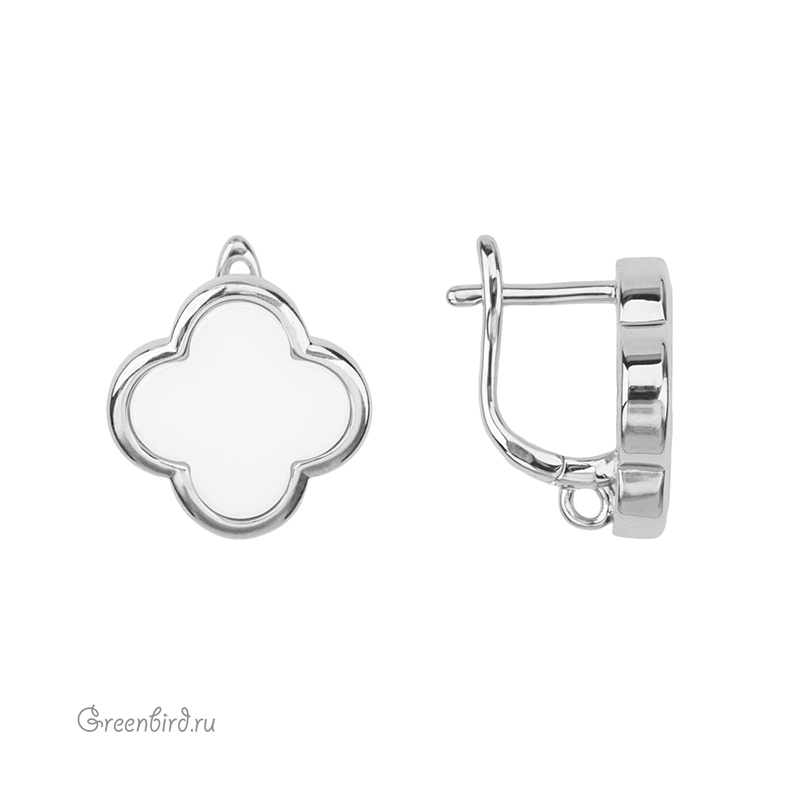 Фурнитура для бижутерии - швензы с английским замком, с керамической вставкой и незапаянным колечком для подвески. Материал: латунь, покрытие: родий. Цвет: белый. Размер декоративного элемента: 16 х 16 мм, толщина дужки 1,2 мм, ширина дужки: 3 мм, толщина штырька: 1,1 х 1,2 мм, внутренний диаметр колечка: 2 мм. Производство: Китай. Цена указана за пару.