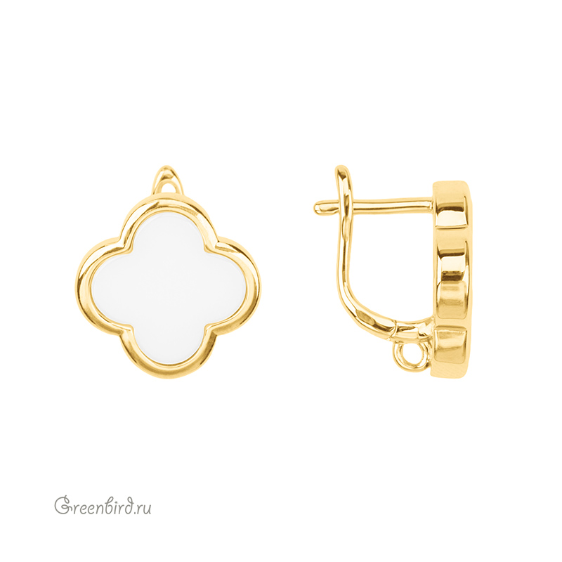 Фурнитура для бижутерии - швензы с английским замком, с керамической вставкой и незапаянным колечком для подвески. Материал: латунь, покрытие: золото. Цвет: белый. Размер декоративного элемента: 16 х 16 мм, толщина дужки 1,2 мм, ширина дужки: 3 мм, толщина штырька: 1,1 х 1,2 мм, внутренний диаметр колечка: 2 мм. Производство: Китай. Цена указана за пару.