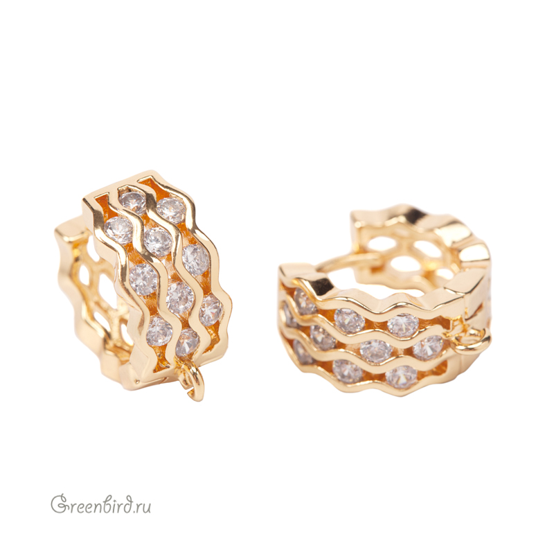 Фурнитура для бижутерии - круглые швензы с фианитами. Материал: латунь, покрытие: золото. Размер с петелькой: 7 х 15 мм, толщина дужки: 1 мм. Производство: Китай. Цена указана за пару.