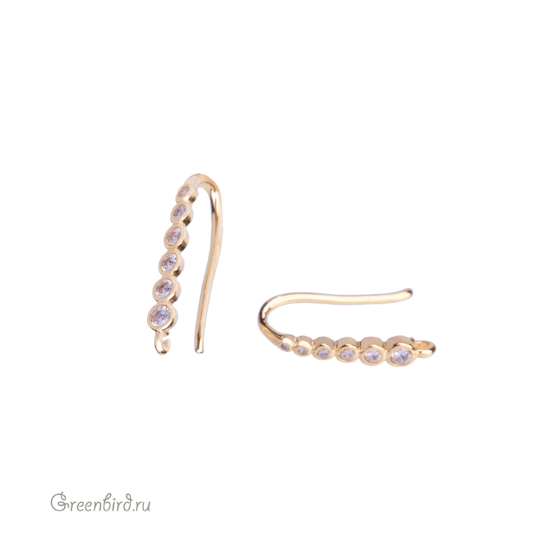 Фурнитура для бижутерии - швензы с фианитами. Материал: латунь, покрытие: золото. Размер: 3,3 х 19 мм, толщина 1,1 мм. Обратите внимание: швензы продаются без заглушек. Производство: Китай. Цена указана за пару.