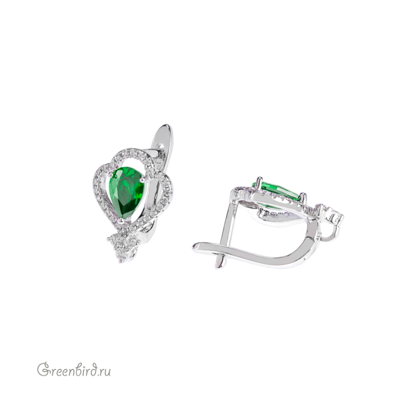 Фурнитура для бижутерии - швензы с английским замком, с классическими и цветными фианитами. Материал: латунь, покрытие: родий. Огранка центральной вставки: груша, цвет: зеленый. Размер декоративного элемента: 11,3 х 15,6 мм, толщина дужки: 1,3 мм, ширина дужки: 2,7 мм, толщина штырька: 0,9 х 1,4 мм; размер центральной вставки: 5 х 6,8 мм. Производство: Китай. Цена указана за пару.