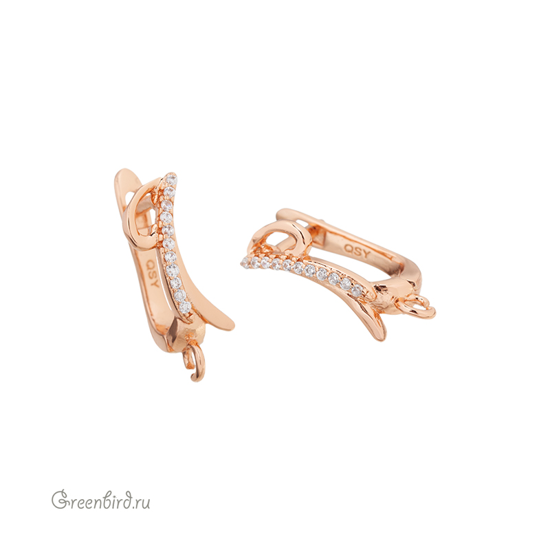 Фурнитура для бижутерии - швензы с английским замком и фианитами. Материал: латунь, покрытие: красное золото. Размер декоративного элемента с петелькой: 5,8 х 16,8 мм, толщина дужки 0,9 мм, ширина дужки: 2,6 мм, толщина штырька: 1 мм. Производство: Китай. Цена указана за пару.