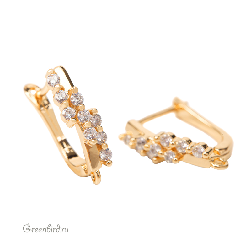 Фурнитура для бижутерии - швензы с английским замком и фианитами зеркальные. Материал: латунь, покрытие: яркое золото. Размер декоративного элемента с петелькой: 5,7 х 18,7 мм, толщина дужки 1,2 мм, ширина дужки: 2,8 мм, толщина штырька: 1 мм. Производство: Китай. Цена указана за пару.