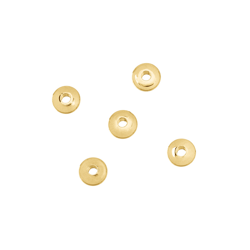 Металлическая бусина-разделитель. Материал: латунь, покрытие: золото. Размер: примерно 5 х 2 мм, диаметр отверстия: 2 мм. Размеры могут незначительно отличаться. Производство: Китай. Цена указана за 5 шт.