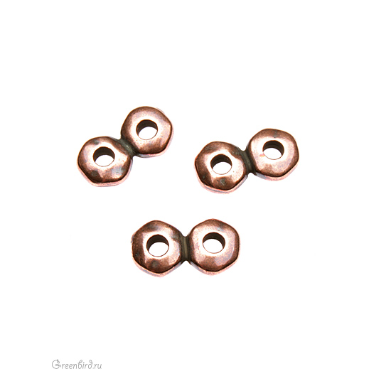 Фурнитура для бижутерии - коннектор-спейсер (бусина-разделитель) на 2 отверстия. Цвет: античная медь. Размер: 12 х 6 мм, отверстие: 2,2 мм. Цена указана за 1 шт.