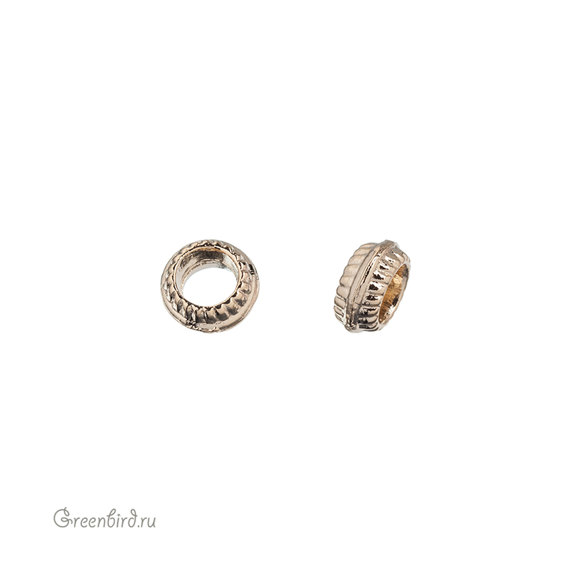 Спейсер (бусина-разделитель) с широким отверстием. Материал: пьютер (оловянный сплав), покрытие: золото. Размер: 7 х 7,4 х 3,4 мм, отверстие: 4 мм. Размер и форма могут незначительно отличаться. Производство: Корея. Цена указана за 1 шт.