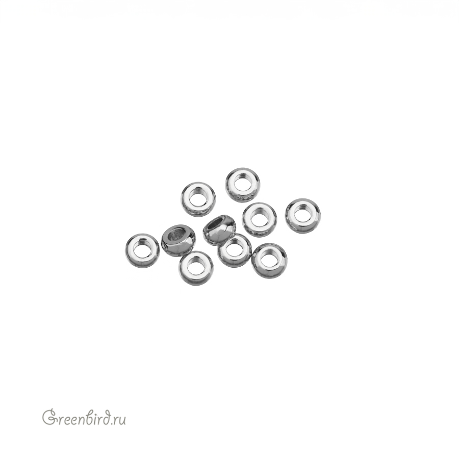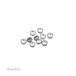 Металлическая бусина-разделитель в форме плоской шайбы, гладкая. Материал: латунь, покрытие: родий. Размер: примерно 3 х 1,5 мм, внутренний диаметр: 1,5 мм. Производство: Китай. Цена указана за упаковку (10 шт).
