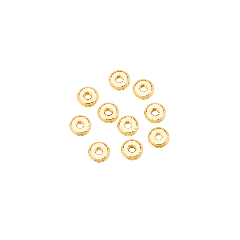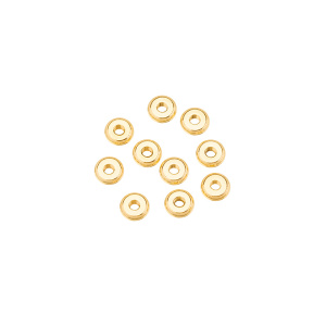 Металлическая бусина-разделитель в форме плоской шайбы, гладкая. Материал: латунь, покрытие: золото. Размер: примерно 4,3 х 1,3 мм, внутренний диаметр: 1 мм. Производство: Китай. Цена указана за 10 шт.