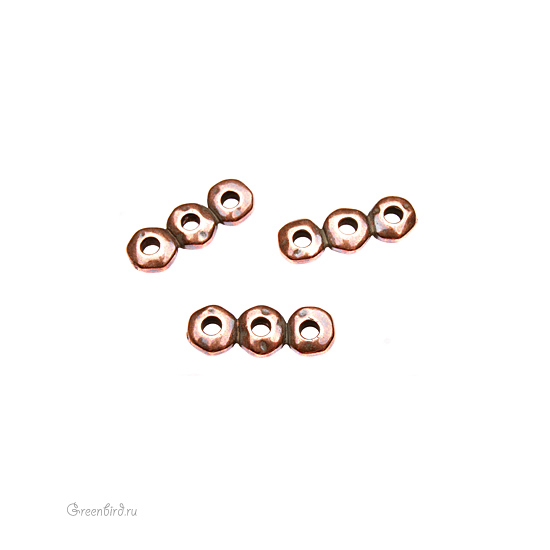 Фурнитура для бижутерии - коннектор-спейсер (бусина-разделитель) на 3 отверстия. Цвет: античная медь. Размер: 18 х 6 мм, отверстие: 2,2 мм. Цена указана за 1 шт.