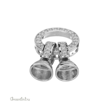 Фурнитура для бижутерии - замок часовой с фианитами в виде неразъемного кольца с двумя застежками. Застежки снабжены колпачками с внутренней перегородкой под нити, шнуры или жгуты. Кольцо имеет отверстия для крепления нитей, также может использоваться отдельно как пришивной элемент. Материал: латунь, покрытие: родий. Общий размер: 36 х 14,5 х 7,5 мм; кольцо: 14,5 мм (внутренний диаметр: 9,4 мм), отверстия: 0,9 х 4,2 мм; размер застегивающейся части (клипсы-крючка) с колпачком: 14,4 х 7,5 мм, максимальный внутренний диаметр колпачков: 5,9 мм. Производство: Китай. Цена указана за 1 шт.