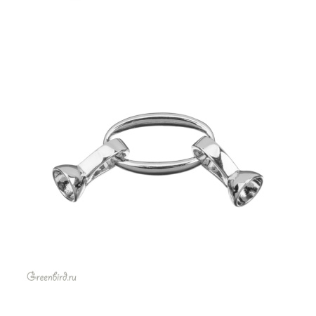 Фурнитура для бижутерии - замок часовой в виде неразъемного кольца с двумя застежками. Застежки снабжены колпачками с внутренней перегородкой под нити, шнуры или жгуты. Материал: латунь, покрытие: родий. Общий размер: 44,5 х 13,4 х 7,5 мм, кольцо: 21,1 х 13,4 мм, размер застегивающейся части (клипсы-крючка) с колпачком: 14,4 х 7,5 мм, максимальный внутренний диаметр колпачков: 5,9 мм. Производство: Китай. Цена указана за 1 шт.