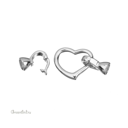 Фурнитура для бижутерии - замок часовой в виде неразъемного элемента с двумя застежками. Застежки снабжены колпачками с внутренней перегородкой под нити, шнуры или жгуты. Материал: латунь, покрытие: родий. Общий размер: 33,5 х 14,8 х 6,5 мм, элемент-сердце: 16,5 х 14,7 мм, размер застегивающейся части (клипсы-крючка) с колпачком: 11,8 х 6,4 х 5,7 мм, максимальный внутренний диаметр колпачков: 4,3 мм. Производство: Китай. Цена указана за 1 шт.