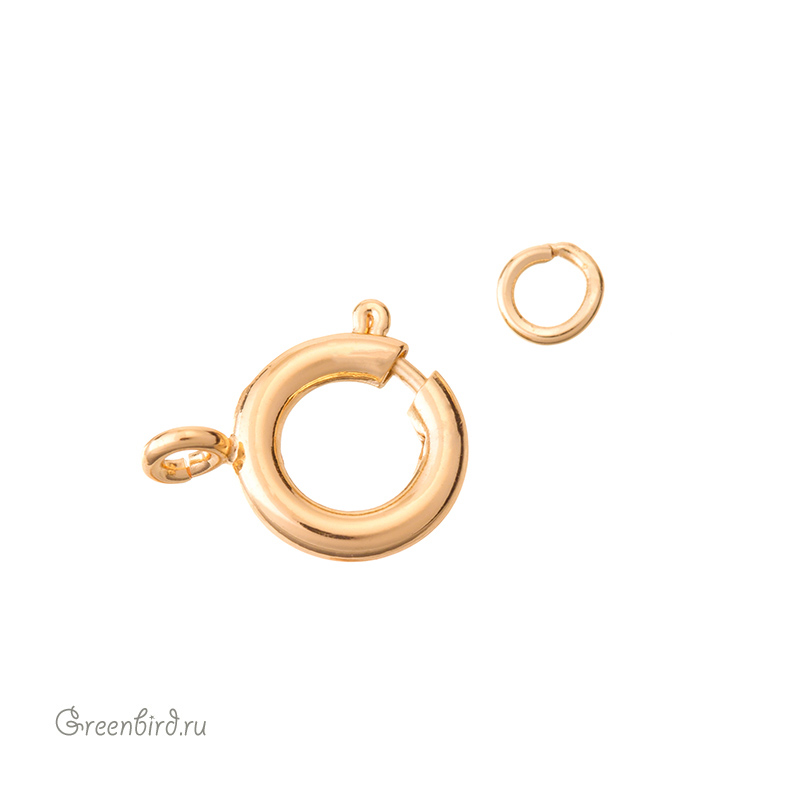 Фурнитура для бижутерии - замок-колечко c дополнительным колечком. Материал: латунь, покрытие: золото. Размер замочка: 6 мм, размер колечка: 4 мм, внутренний размер петли: 1,5 мм. Производство: Китай. Цена указана за 1 штуку.