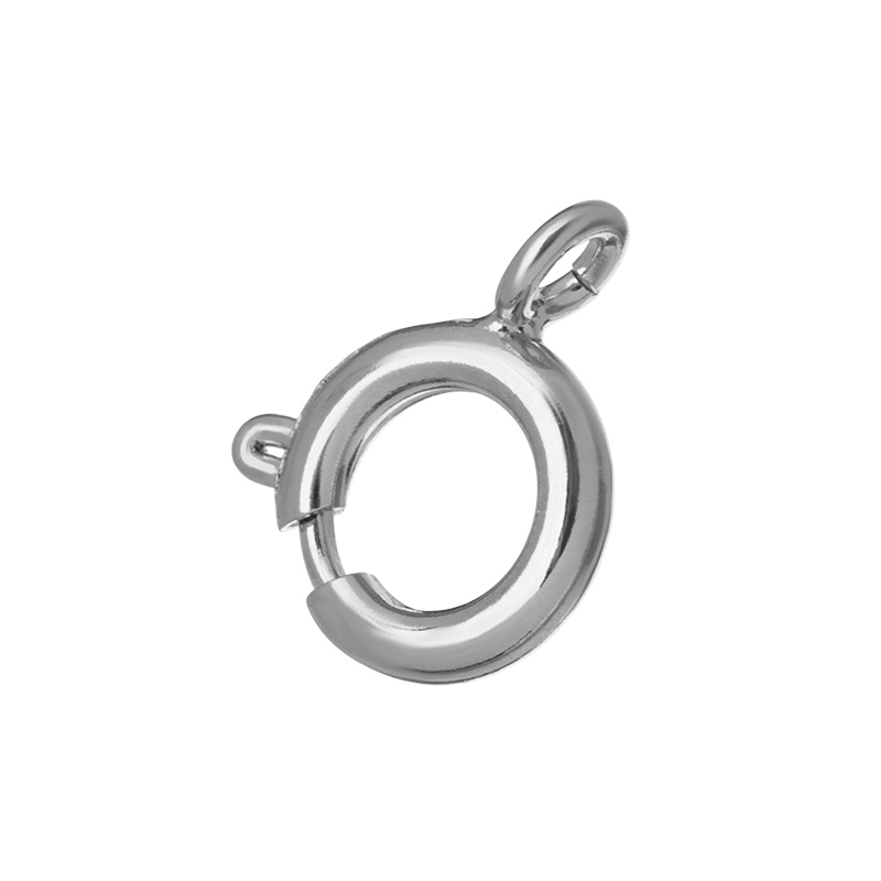 Фурнитура для бижутерии - замок-колечко без ответной части. Замочек для бус, колье, чокеров и браслетов. Материал: латунь, цвет покрытия: родий. Размер замочка: 9 мм, размер петли: 1,9 мм. Производство: Китай. Цена указана за 1 штуку.