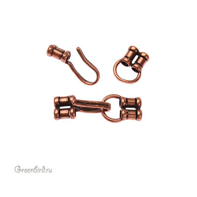 Металлический замочек - концевик-кримп на два шнура, материал: латунь, цвет: античная медь, размер: крючок: 16 х 7 мм, петелька: 11,5 х 8,5 мм, в застегнутом виде: 26 х 8,5 мм, отверстие: 2,1 мм. Производство: Израиль. Цена указана за 1 шт.
