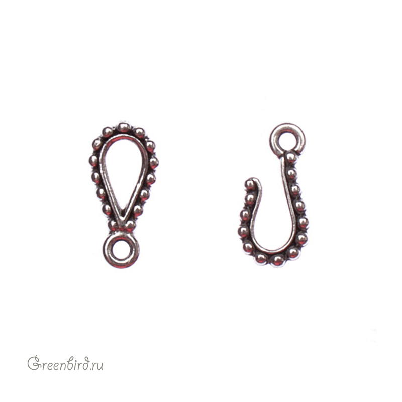 Фурнитура для бижутерии - металлический замочек-крючок. Цвет: античное серебро. Размер элемента: 14 х 7 мм. Цена указана за 1 шт.