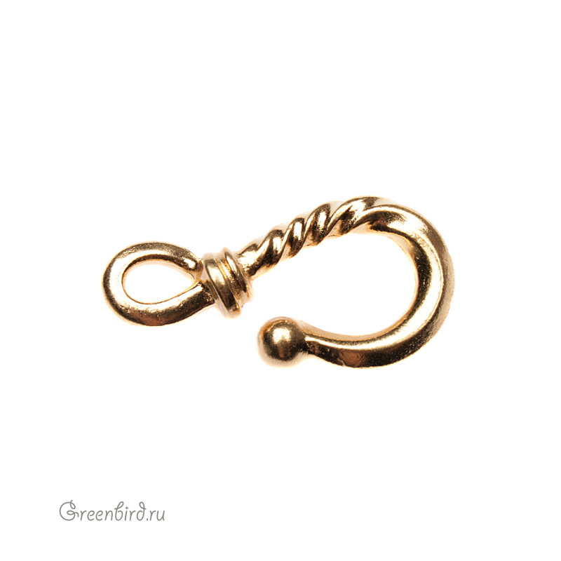 Фурнитура для бижутерии - металлический замочек-крючок. Цвет: золото. Размер: 24 х 12 мм, отверстие: 3 мм. Цена указана за 1 шт.