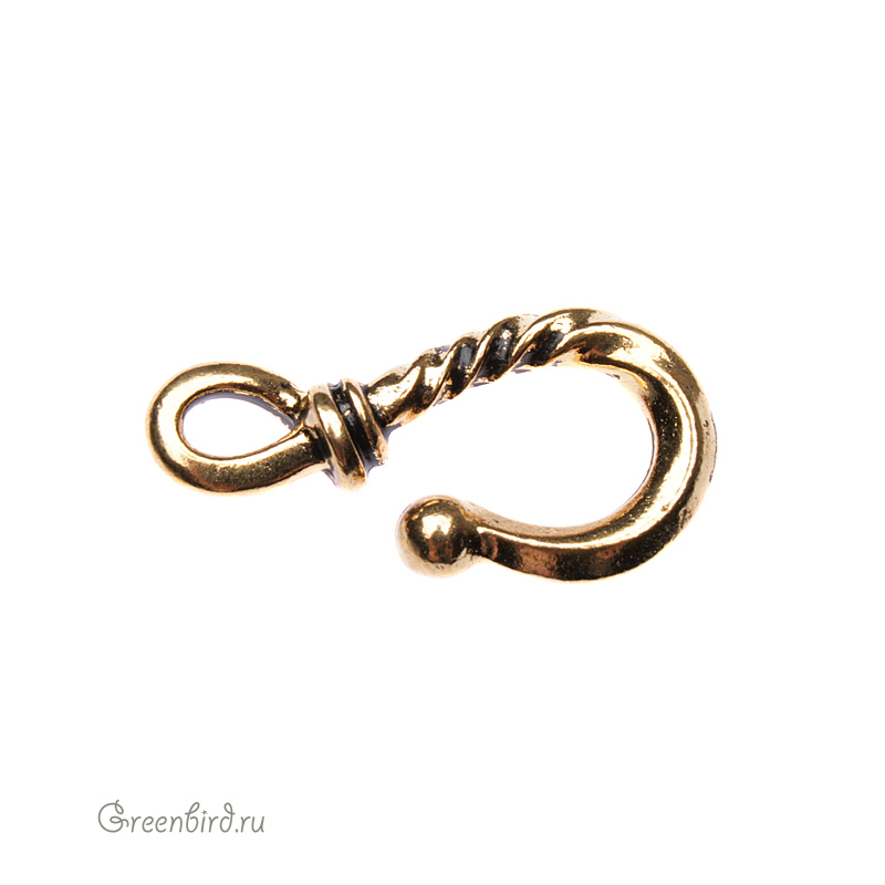 Фурнитура для бижутерии - металлический замочек-крючок. Цвет: античное золото. Размер: 24 х 12 мм, отверстие: 3 мм. Цена указана за 1 шт.