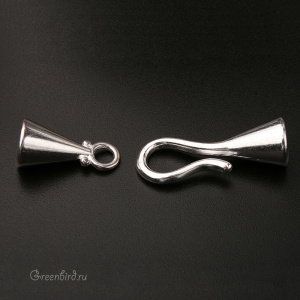 Фурнитура для бижутерии - замок-концевик для кумихимо. Цвет: светлое серебро. Размер в застегнутом виде: 39 х 9 мм, максимальный внутренний диаметр: 6 мм. Подходит для шнура 4,5-5,8 мм (максимальный размер зависит от материала шнура и глубины вклеивания). Производство: Китай. Цена указана за 1 шт.