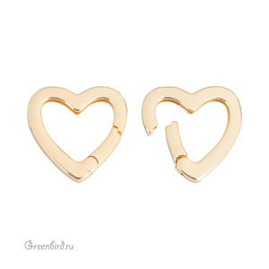 Фурнитура для бижутерии - кольцо-карабин классическое (без креплений), гладкое в форме сердца. Материал: латунь, покрытие: золото. Размер: 20,5 х 20,4 х 2,7 мм, внутренний размер: 14,2 х 10,6 мм. Производство: Китай. Цена указана за 1 шт.