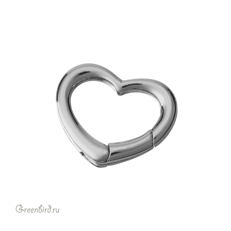 Фурнитура для бижутерии - кольцо-карабин классическое (без креплений), гладкое в форме сердца. Материал: латунь, покрытие: родий. Размер: 16 х 13 х 3,5 мм, внутренний размер: 11,6 х 6,9 мм. Производство: Китай. Цена указана за 1 шт.