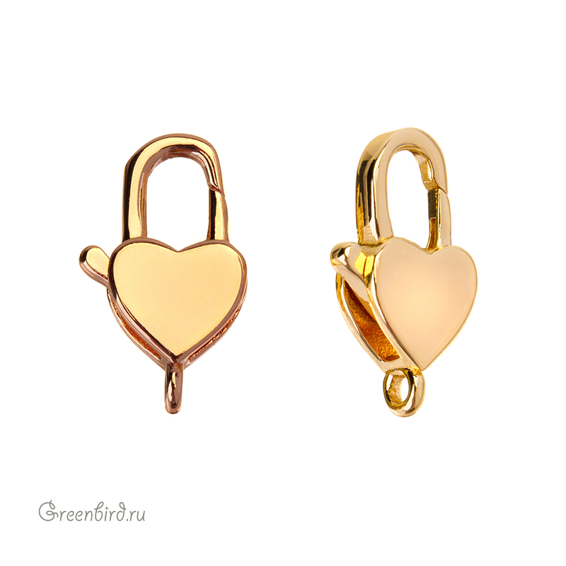 Фурнитура для бижутерии - замок-карабин с элементом в форме сердца. Обратите внимание: замок идет без ответной части. Материал: латунь, покрытие: золото. Размер замка: 13,5 х 8 мм. Производство: Китай. Цена указана за 1 штуку.