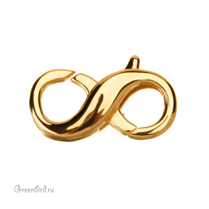 Фурнитура для бижутерии - кольцо-карабин фигурное (без креплений), гладкое в форме бесконечности. Материал: латунь, покрытие: золото. Размер: 18,6 х 10,5 х 5 мм, внутренний диаметр: 5,5 х 5,7 мм. Производство: Китай. Цена указана за 1 шт.