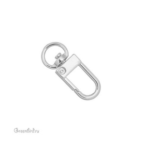 Фурнитура для бижутерии - поворотный замок-карабин. Материал: латунь; покрытие: родий. Размер замка: 33 х 12,5 мм, внутренний размер соединительного звена: 9 x 5,5 мм. Производство: Китай. Цена указана за 1 штуку.