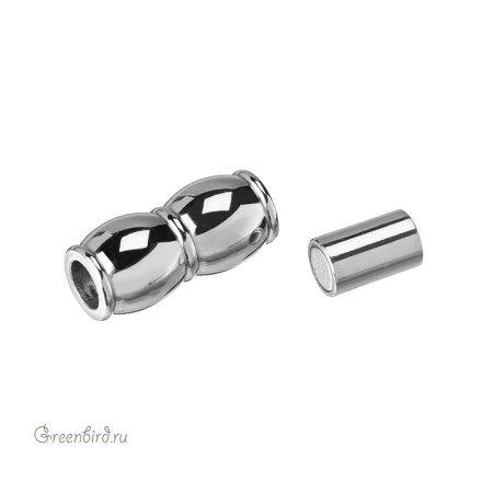 Фурнитура для бижутерии - магнитный замочек для шнура-змейки. Материал: нержавеющая сталь. Цвет: серебро. Размер: 15 х 6,7 мм, внутренний диаметр: 3 мм. Производство: Китай. Цена указана за 1 шт.